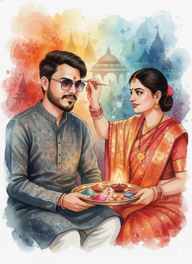 🎨 Artistic Watercolor Style Gemini AI Image Prompt For Bhai Dooj 2025