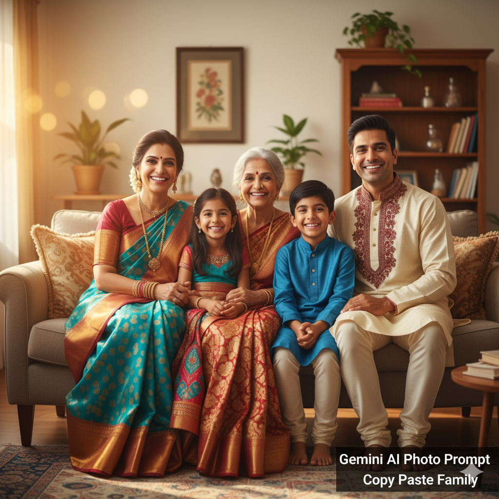 Alt Text: “Gemini ai photo prompt copy paste family Indian traditional photo”