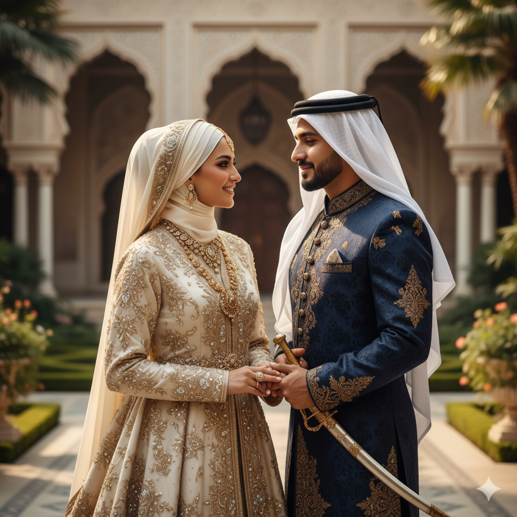 - Example: “Muslim couple in traditional attire, Eid celebration, soft golden light, Instagram reel style.”